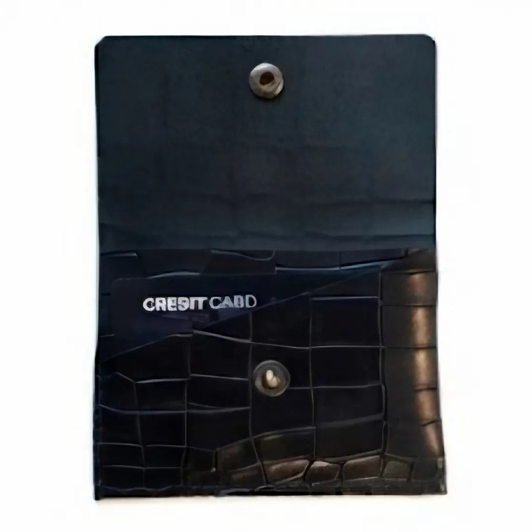 Black Croco Genuine Leather Slim Gloss Aniline Finish With Snap Button Flap 5 Card Capacity Card Case For Men & Women
