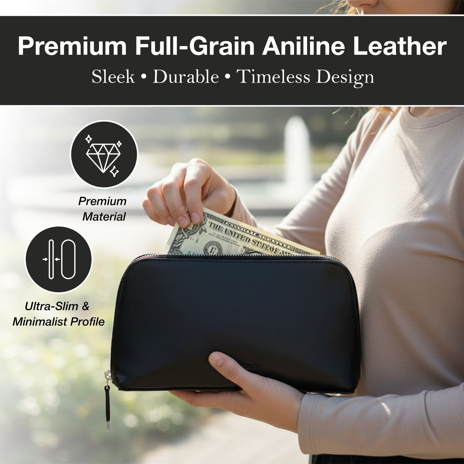 Black Genuine Leather Chargers Gadgets & Accessories Full Grain Aniline Leather Travel Organizer Pouch For Cables For Men & Women