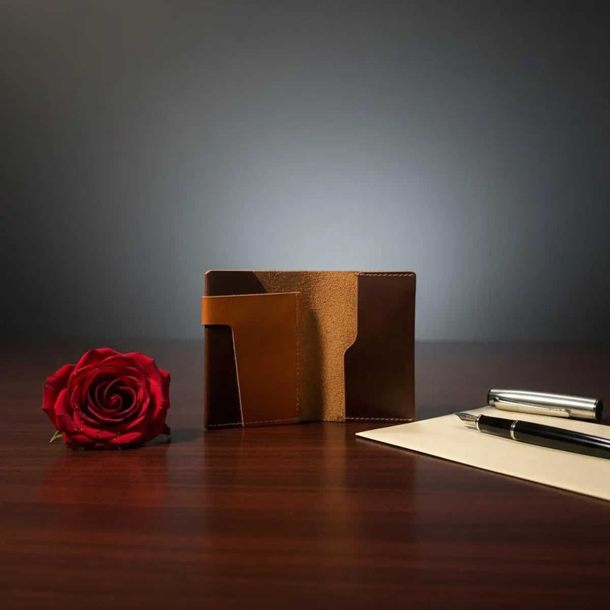 Brown Slim Leather Bifold Minimalist Front Pocket Card Holder Premium Full-Grain Two-Tone Genuine Leather Wallet For Men & Women