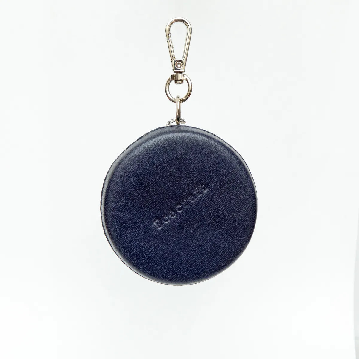 Navy Blue Leather Earphone Case Tws Airpods With Snap Closure Premium Full Grain Protective Pouch For Men & Women